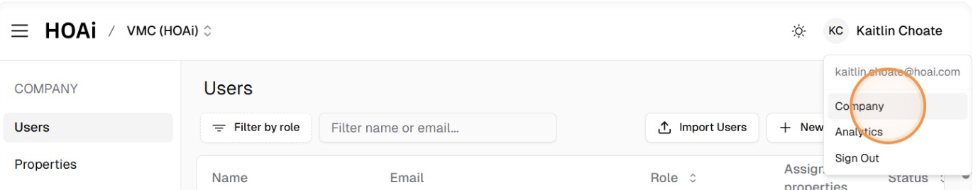 - Locate and click on your name in the top right-hand corner of the page. Select "Company."